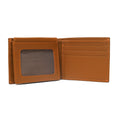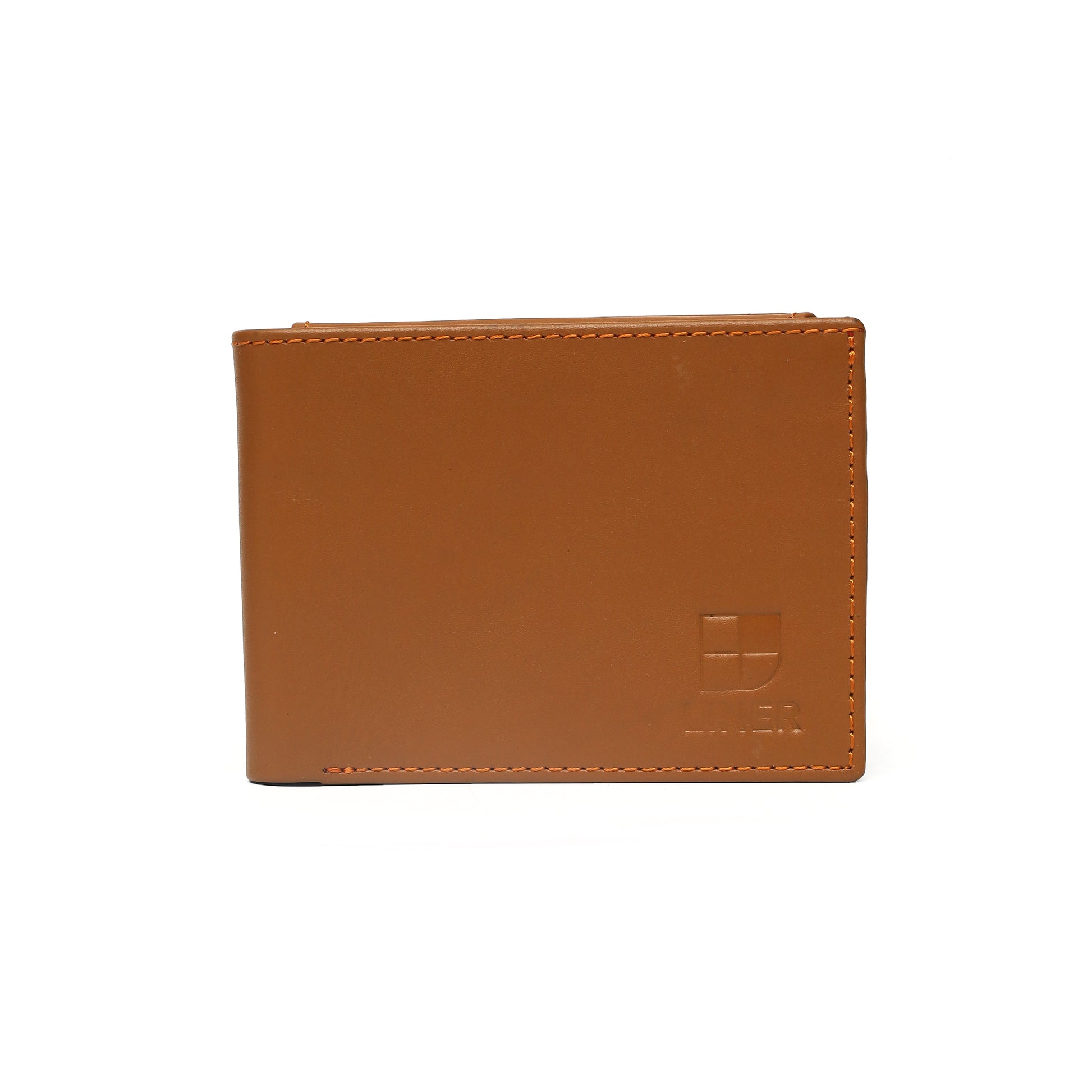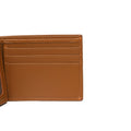 This is a sleek, tan-colored bifold wallet, likely crafted from vegan leather, as suggested by similar products found in the search results. It features a compact design with visible stitching details on the edges, indicating a functional and stylish accessory for organizing cards and cash. The wallet appears to be designed for everyday use, offering a practical solution for carrying essentials in a minimalist form